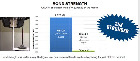 - Highest bond/peel strength between wall and scuff liner